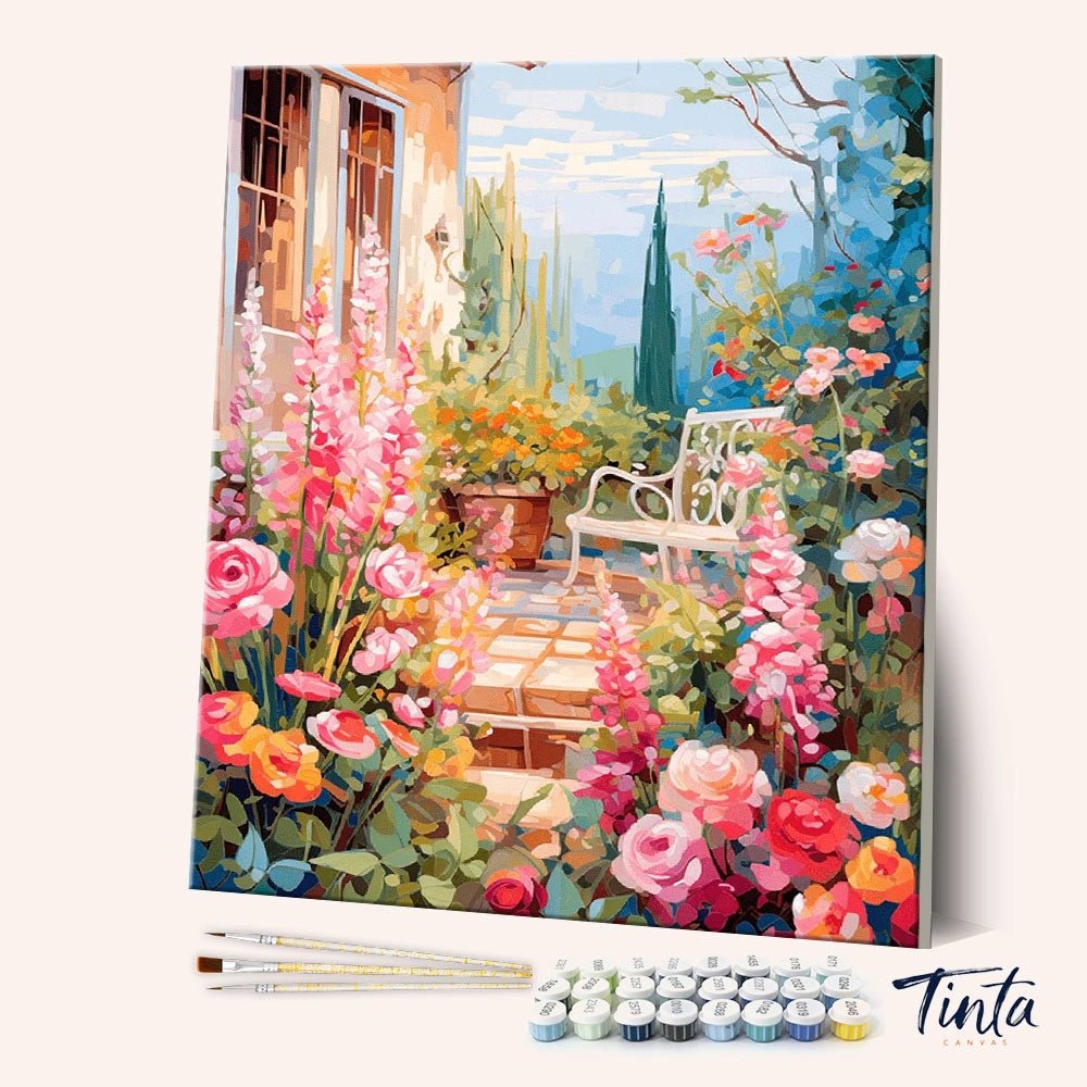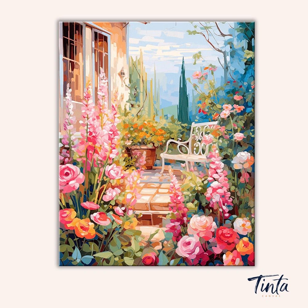 Cada área está claramente numerada, lo que facilita y ameniza el proceso de pintura para principiantes. A medida que los colores se combinan, el jardín va tomando forma, convirtiéndose en una obra de arte terminada que transmite serenidad, elegancia y es perfecta para espacios relajantes.