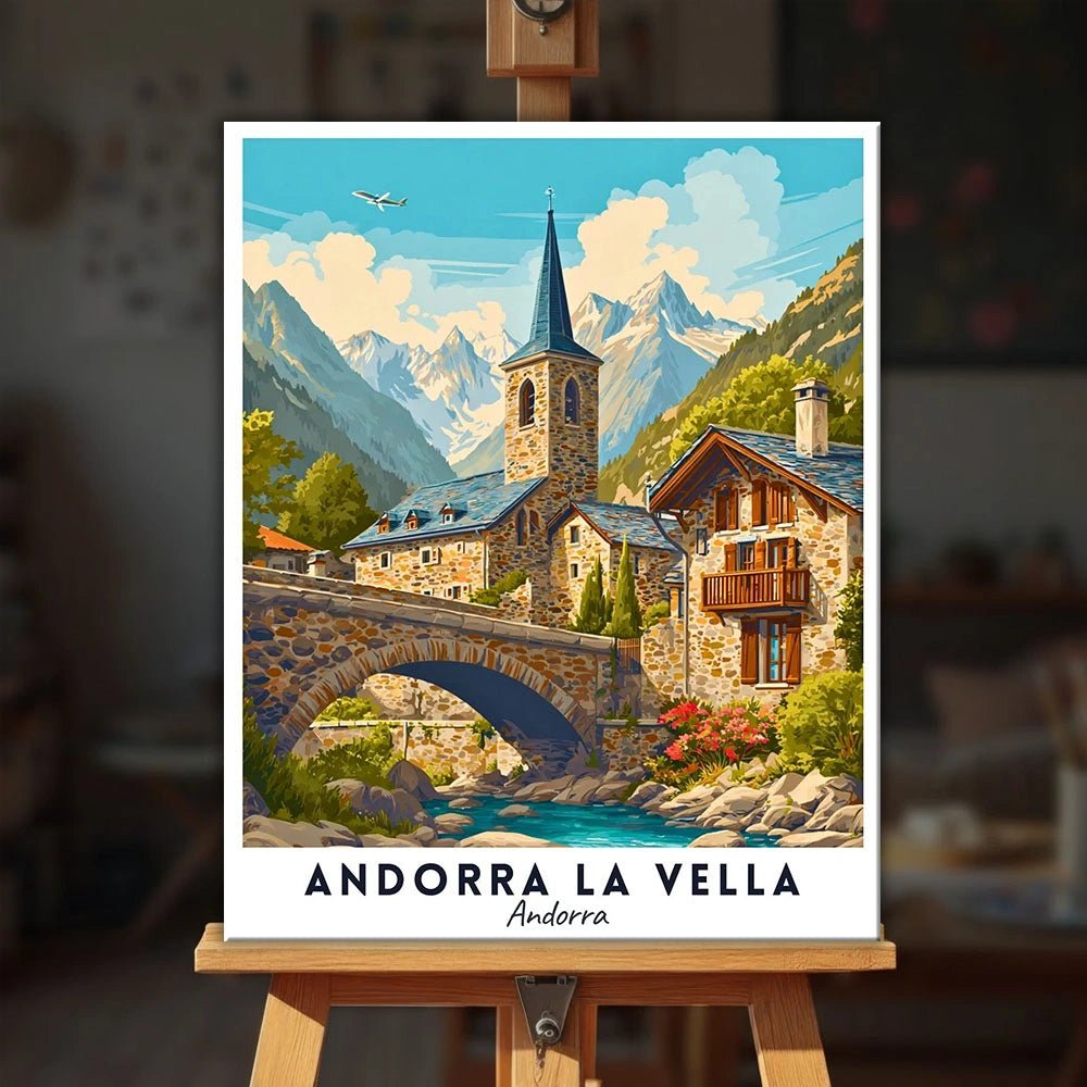 Como capital de Andorra, Andorra la Vella es conocida por su tranquilo ambiente montañoso y su arquitectura histórica. Este kit de pintura por números para adultos combina tonos de piedra natural, azules frescos del agua y exuberante vegetación, creando una experiencia de pintura relajante y un póster de viaje con un acabado armonioso.