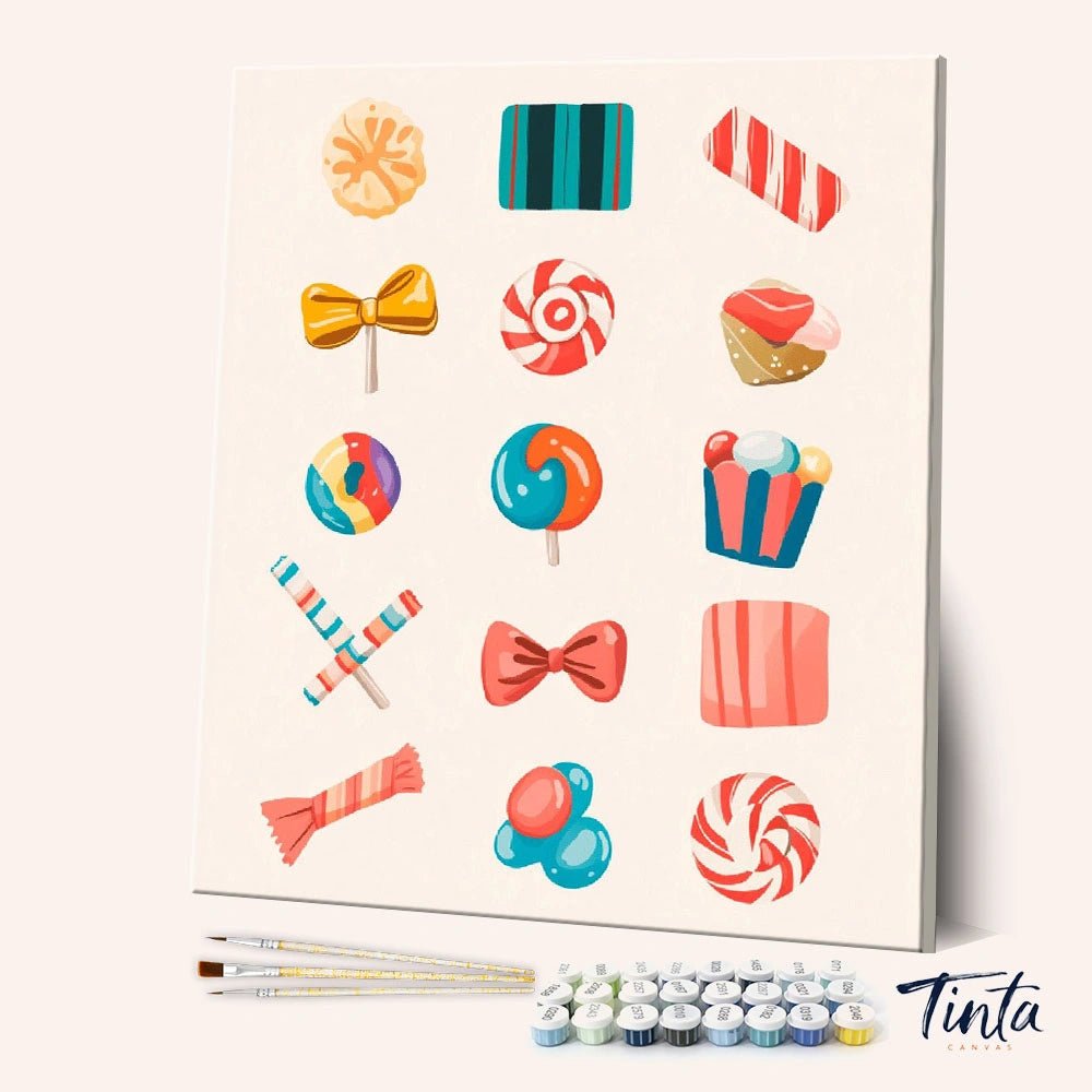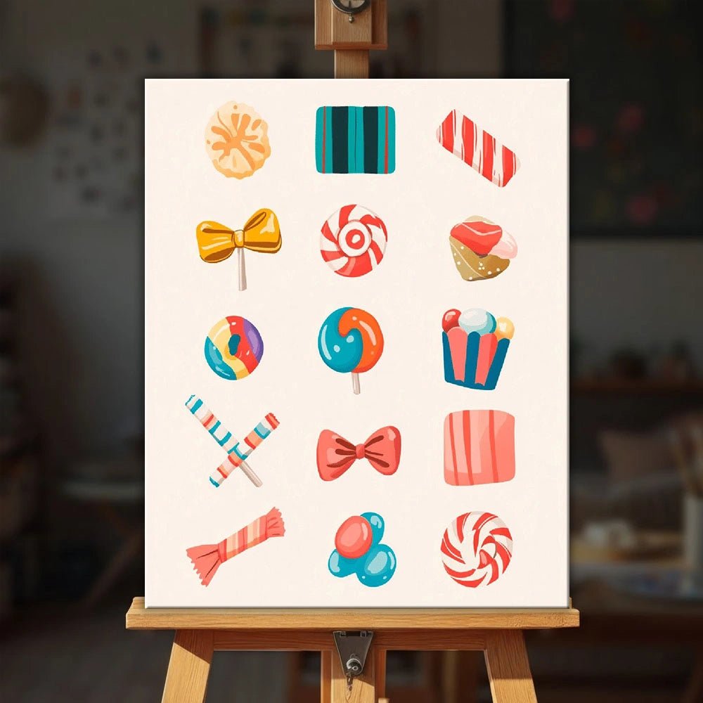 Candy Daydream es un divertido kit de pintura por números inspirado en dulces coloridos, piruletas y dulces festivos. Cada elemento se siente alegre y ligero, combinando pasteles suaves con vibrantes toques de color para crear una composición alegre y nostálgica.