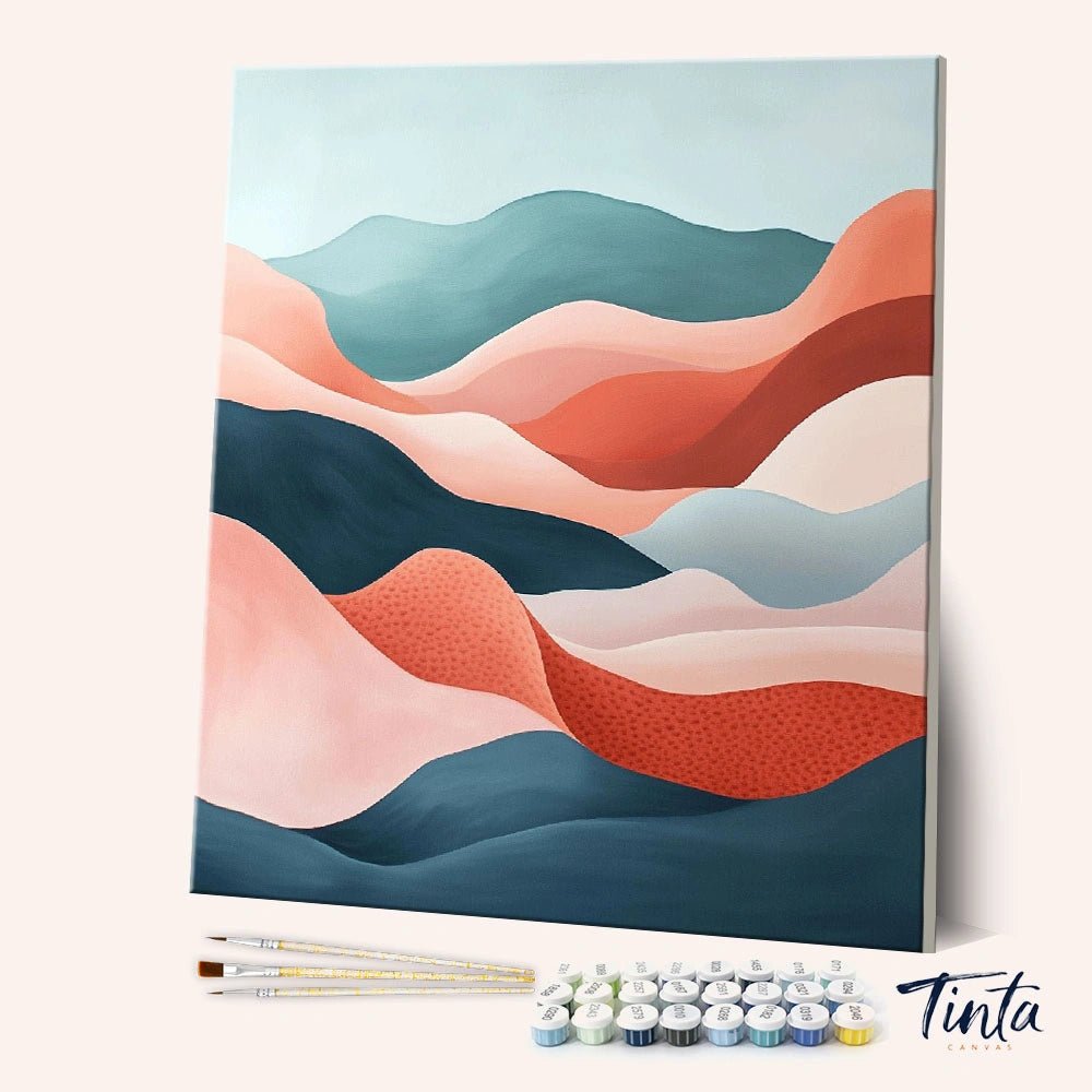 Gentle Drift es un relajante kit abstracto para pintar por números, inspirado en el movimiento suave y la fluidez natural. Ondas superpuestas de rubor, arcilla, verde azulado y azul intenso se combinan a la perfección, creando una composición serena, moderna, etérea y equilibrada.