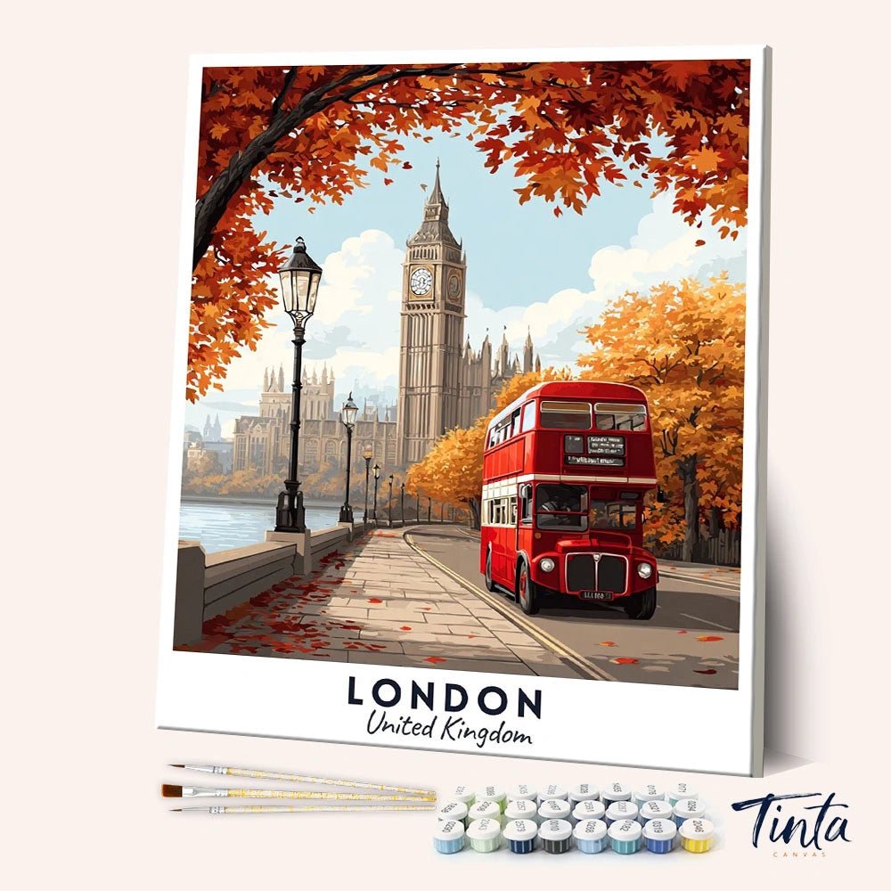 Como capital del Reino Unido, Londres fusiona la historia real con la vida urbana cotidiana. Este kit de pintura por números para adultos presenta rojos intensos, cálidos tonos otoñales y delicados detalles arquitectónicos, creando un proceso de pintura relajante y un póster de viaje con un acabado impactante.