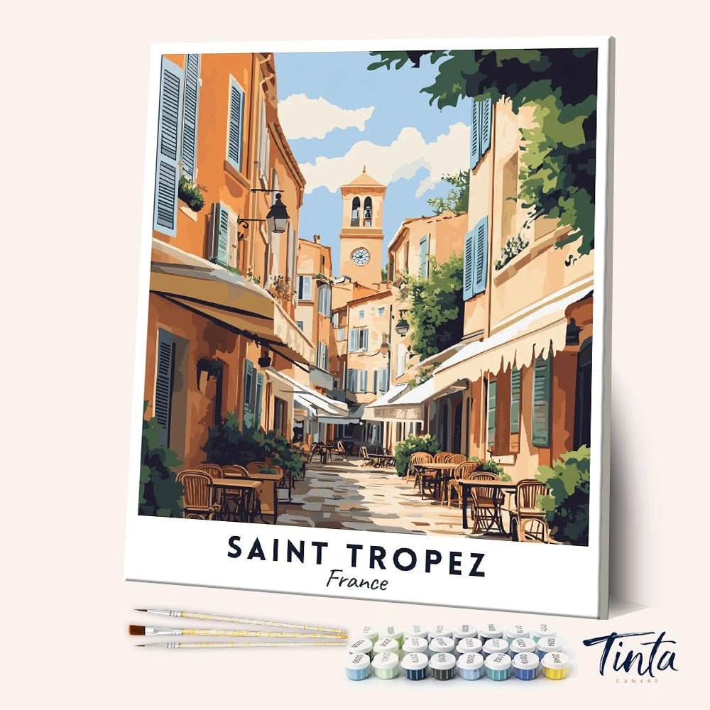 Ubicado en la Riviera Francesa, Saint-Tropez es conocido por su encanto, elegancia y un ritmo más tranquilo, más allá del glamour del puerto. Este kit de pintura por números para adultos ofrece una escapada creativa y relajante, y se completa con un refinado póster de viaje de Saint-Tropez, perfecto para los amantes de las escenas de pueblos franceses y la calidez mediterránea.