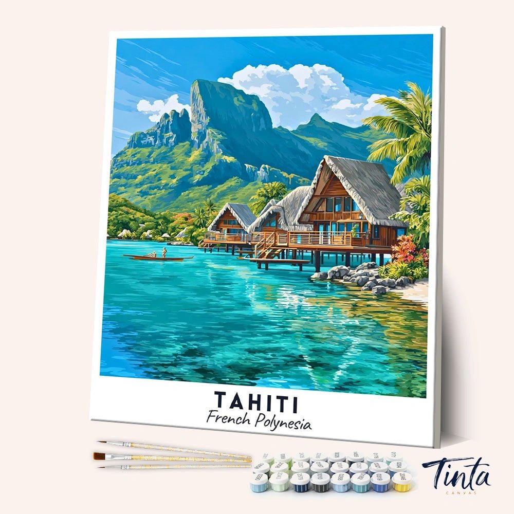 Este kit para pintar por números de pósteres de viaje de Tahití captura la serena belleza de la Polinesia Francesa, con sus cristalinas lagunas turquesas, bungalows sobre el agua y exuberantes montañas volcánicas que se alzan en la distancia. Los suaves reflejos brillan sobre el agua mientras los verdes tropicales y los azules del océano crean una experiencia de pintura suave y relajante que evoca una auténtica escapada a la isla.